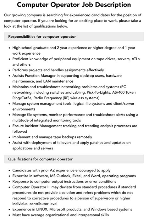 assistant computer operator job description. There are some references to assistant computer operator job description in this article. If you are looking for assistant computer operator job description you've came to the right place. We have posts about assistant computer operator job description. You can check it out below.