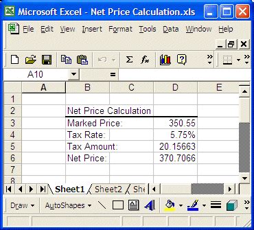 calculate net price in excel