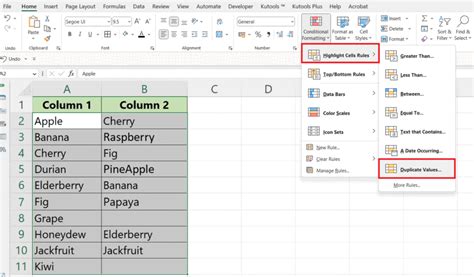 compare two columns in excel highlight duplicates