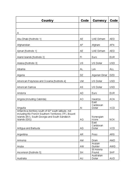 country code to currency code mapping json