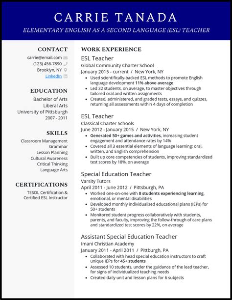 esl resume sample
