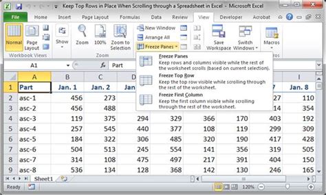 excel cells stay when scrolling