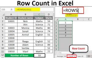 excel formula count total number of rows