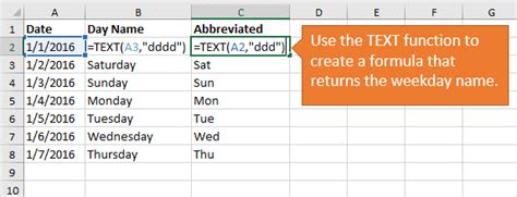 excel formula to return day name