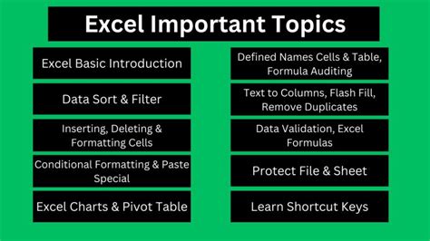excel important topics to learn
