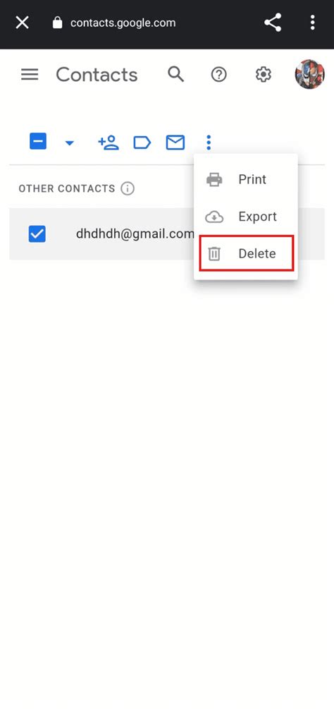 gmail delete cached email addresses