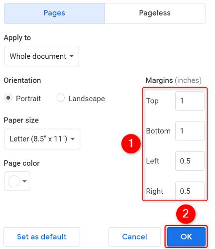 how do you change margin size in google docs
