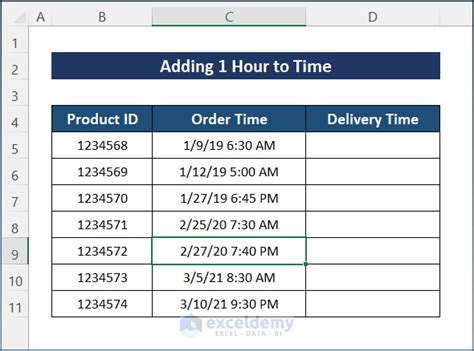 how to add 1 hour to time in excel