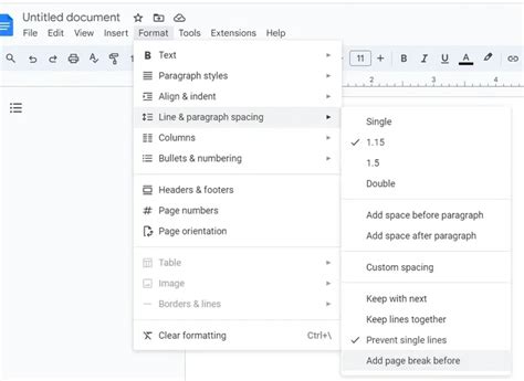 how to add page before first page in google docs