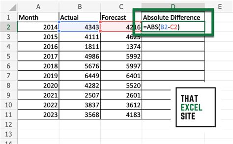 how to calculate absolute difference in excel
