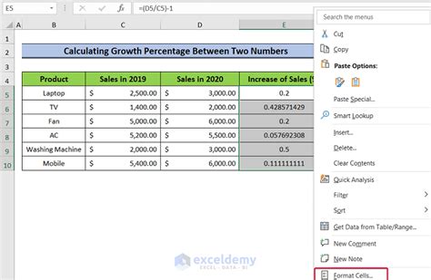 how to count growth percentage in excel