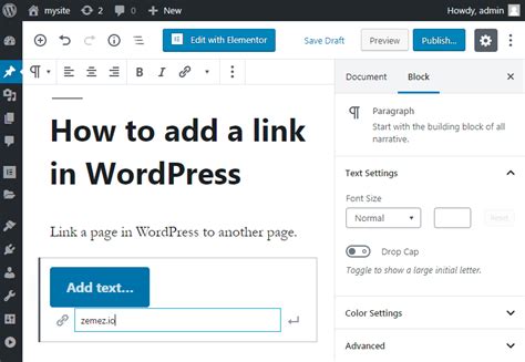 how to create a link to another page in wordpress