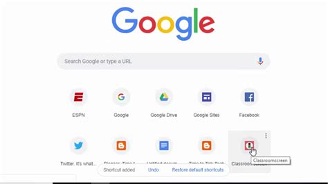 how to create shortcut on google page