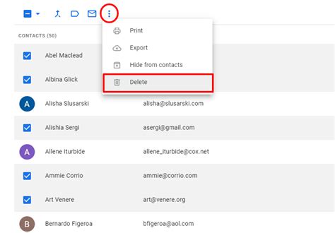 how to delete names from gmail contact list