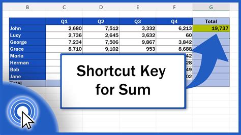 how to find the sum in excel shortcut
