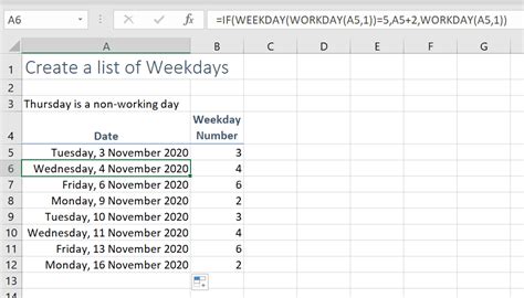 how to get only weekdays in excel formula