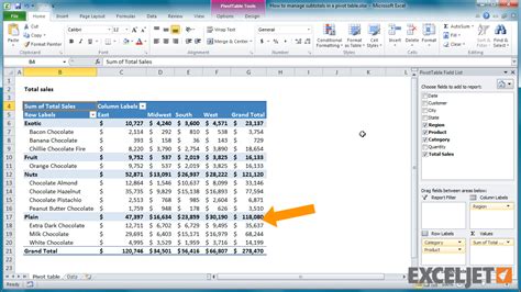 how to get subtotals in pivot table