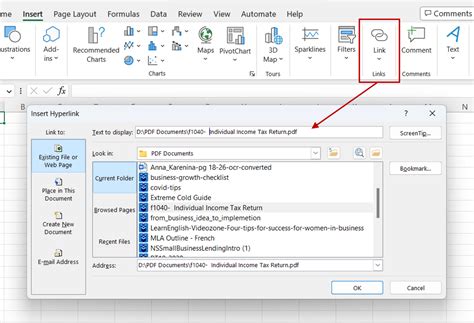 how to link a pdf link in excel