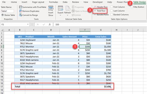 how to put total in excel table