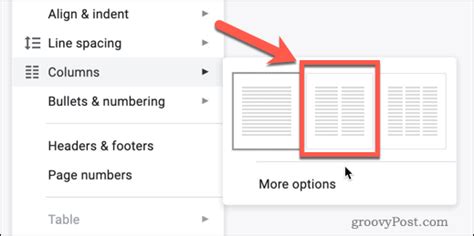 how to separate text into two columns in google docs