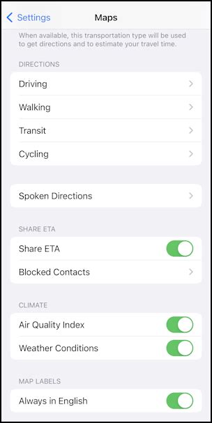 how to set preferences in apple maps