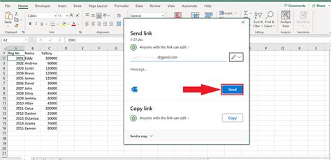how to share excel file with link