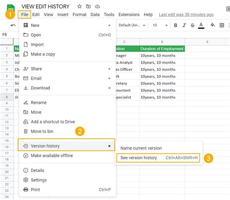 how to use version history in google sheets