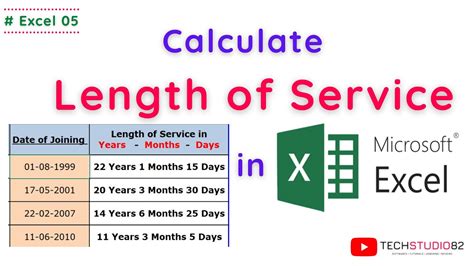 how to work out length of service in excel