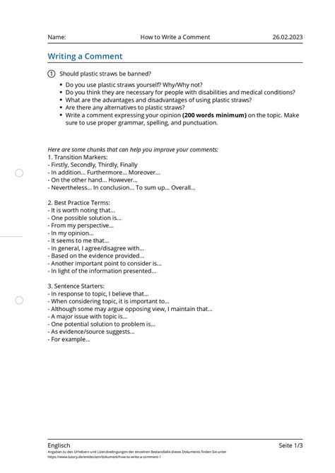 how to write a comment in english example