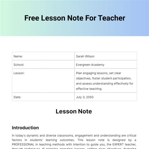 how to write lesson note sample