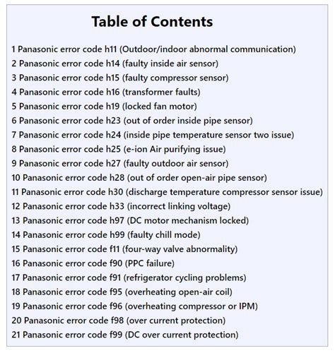 panasonic air conditioner remote fault codes