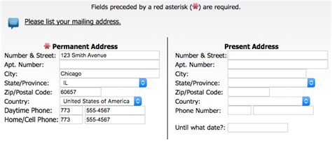 residential address with postal code