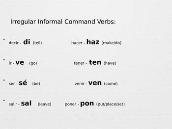 spanish informal commands irregular verbs. There are some references to spanish informal commands irregular verbs in this article. If you are looking for spanish informal commands irregular verbs you've came to the right place. We have posts about spanish informal commands irregular verbs. You can check it out below.