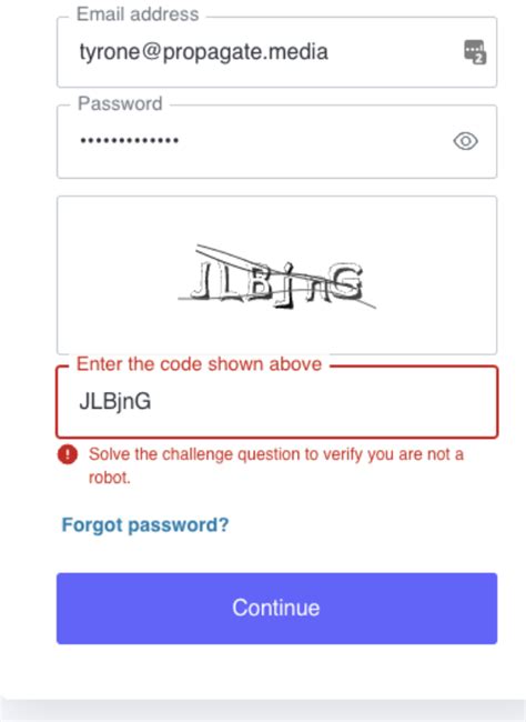 what does error validating captcha mean